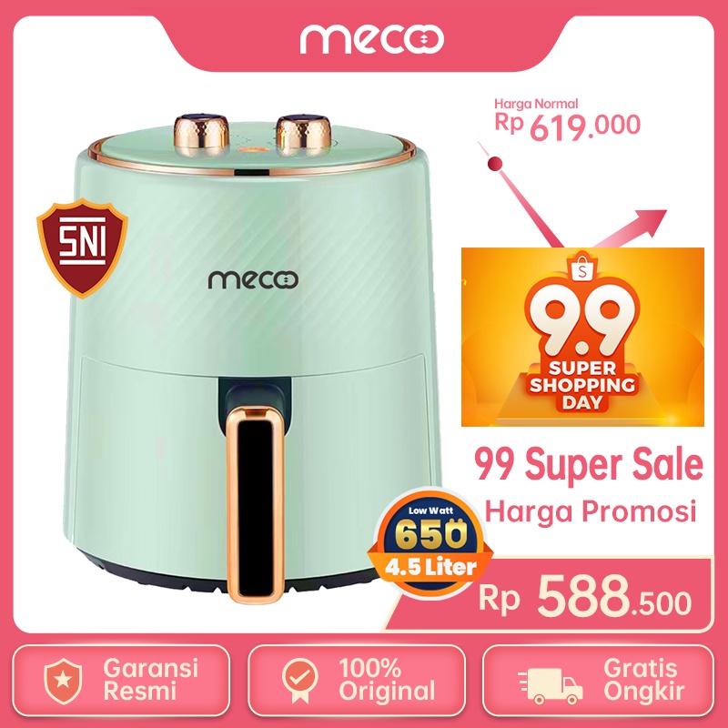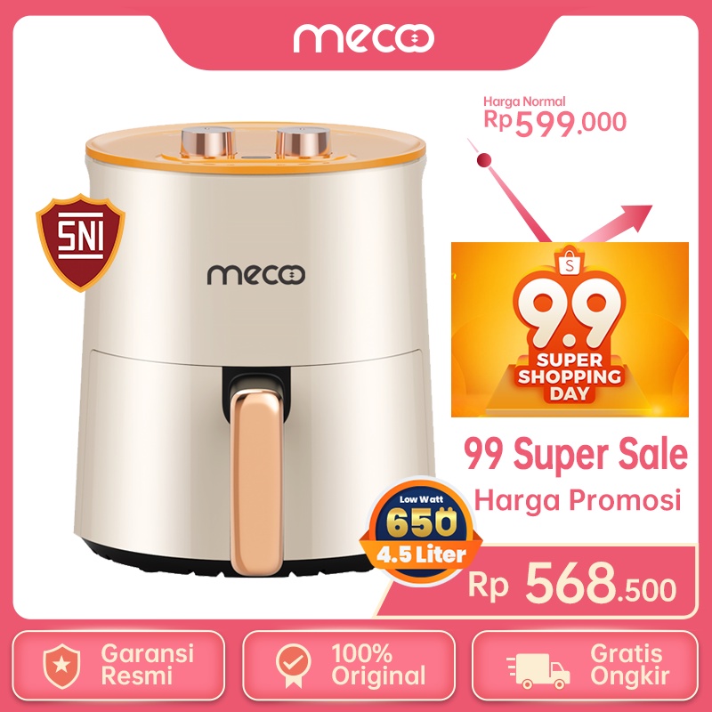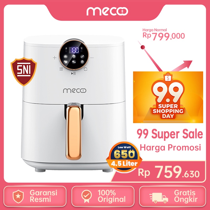 Harga Mecoo Most Aesthetic 650 Low Watt Air Fryer 4.5L SNI Hemat Listrik & Anti Jeglek Mesin Penggorengan Tanpa Minyak Oven Listrik saat ini masih murah hanya Rp. 568.500,00, kita tidak akan pernah tahu tentang Harga ini di masa depan, juga stok barang ini nanti atau besok hari, bisa saja harganya naik tinggi atau bisa juga stok sudah Habis.