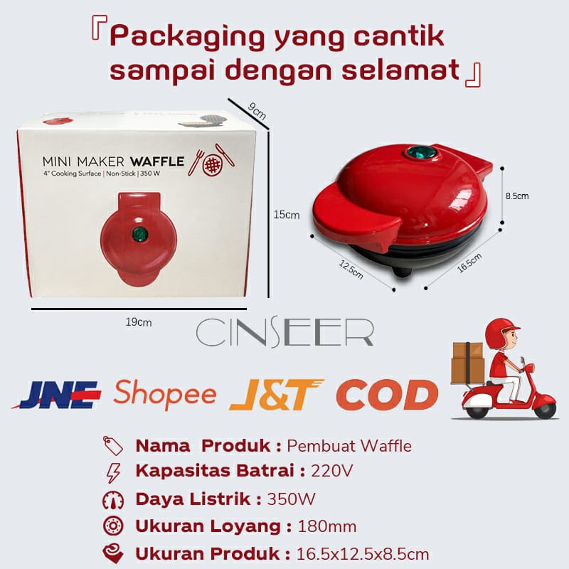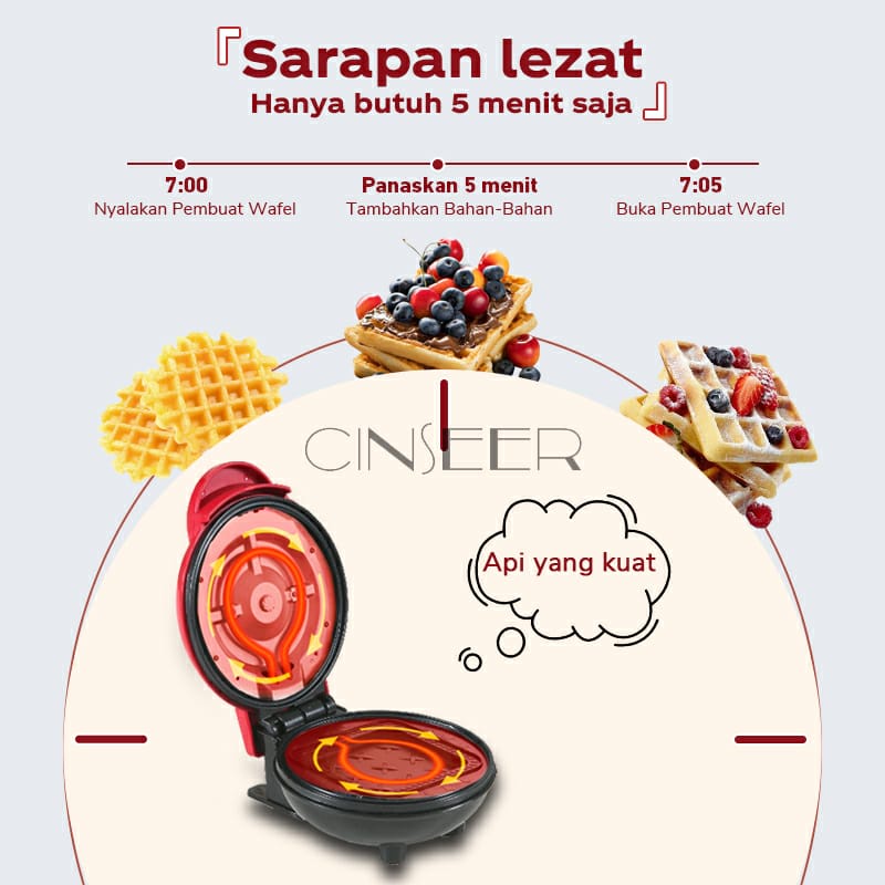 CINSEER mini maker waffle elektrik / mesin pembuat waffle pizza sandwich mini non stick E-ROSH anti lengket